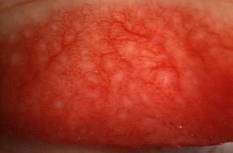 眼がかゆく、目脂が出て、まぶたにブツブツとしたできものができます。コンタクトレンズを使っている人がなりやすい病気で、できもののせいでコンタクトレンズがズレ、視界が悪くなります。