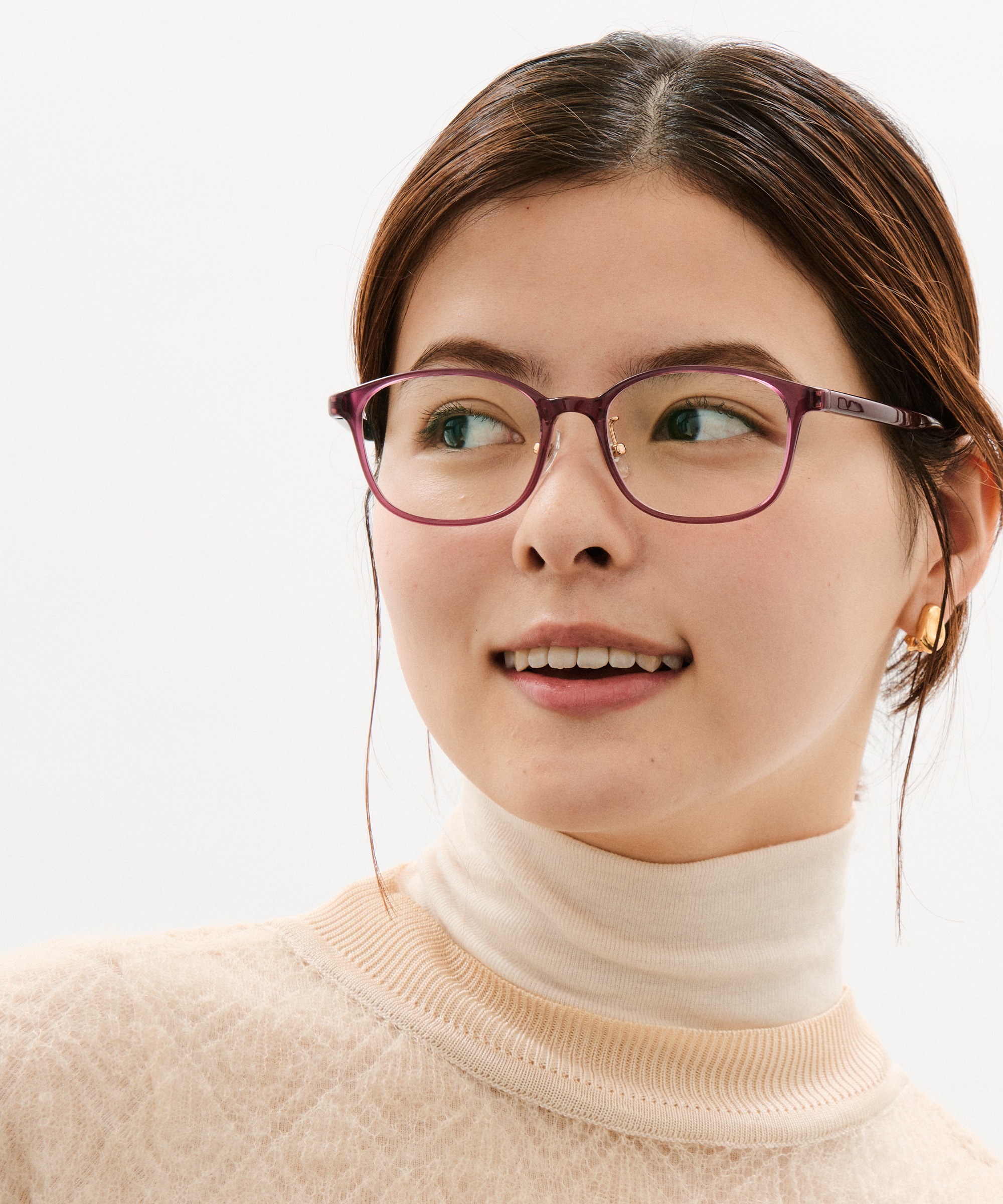メガネをかけるだけで、頬の血色感をアップさせお肌をより明るくみせる、チーク効果をもたらすレンズです。