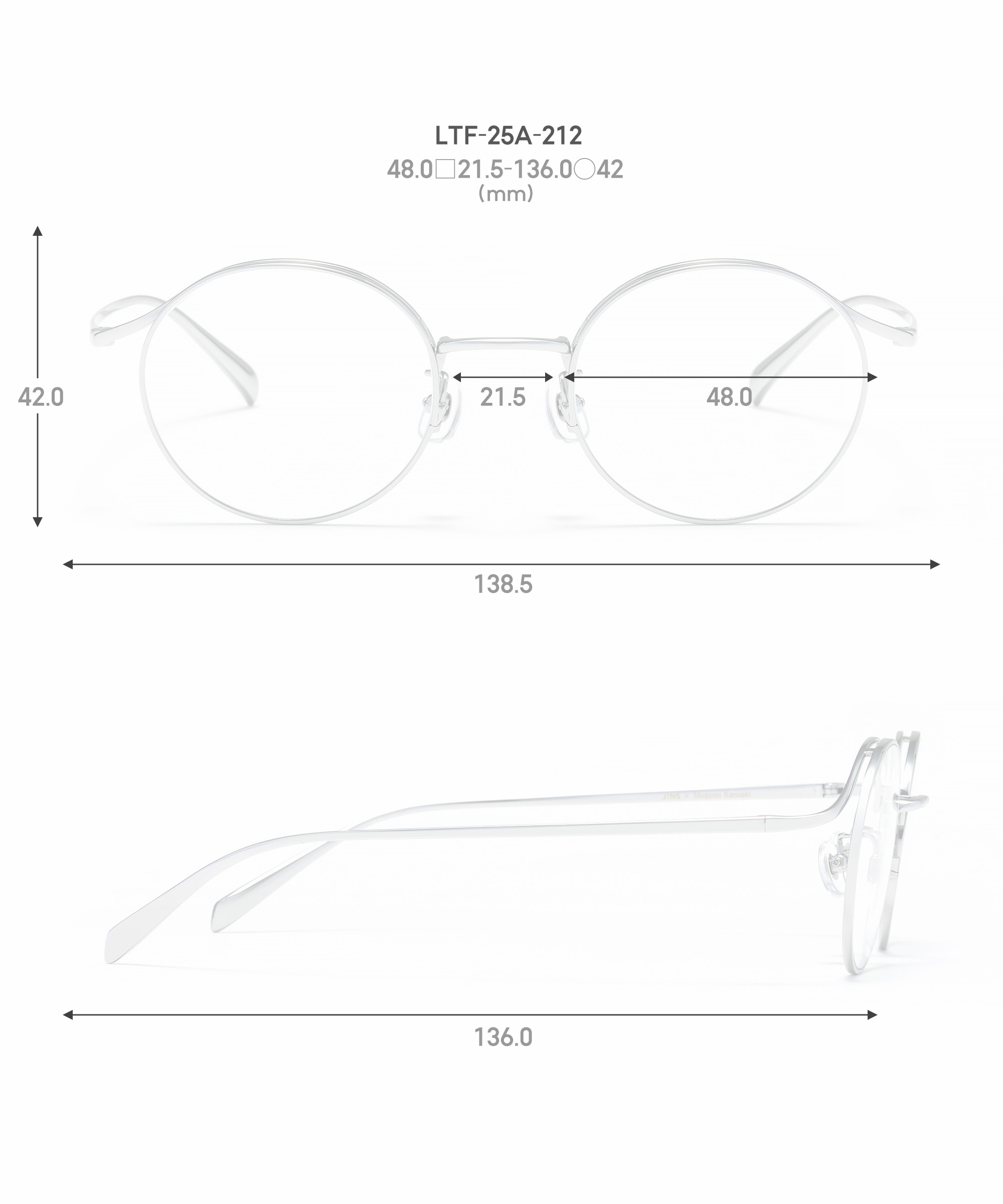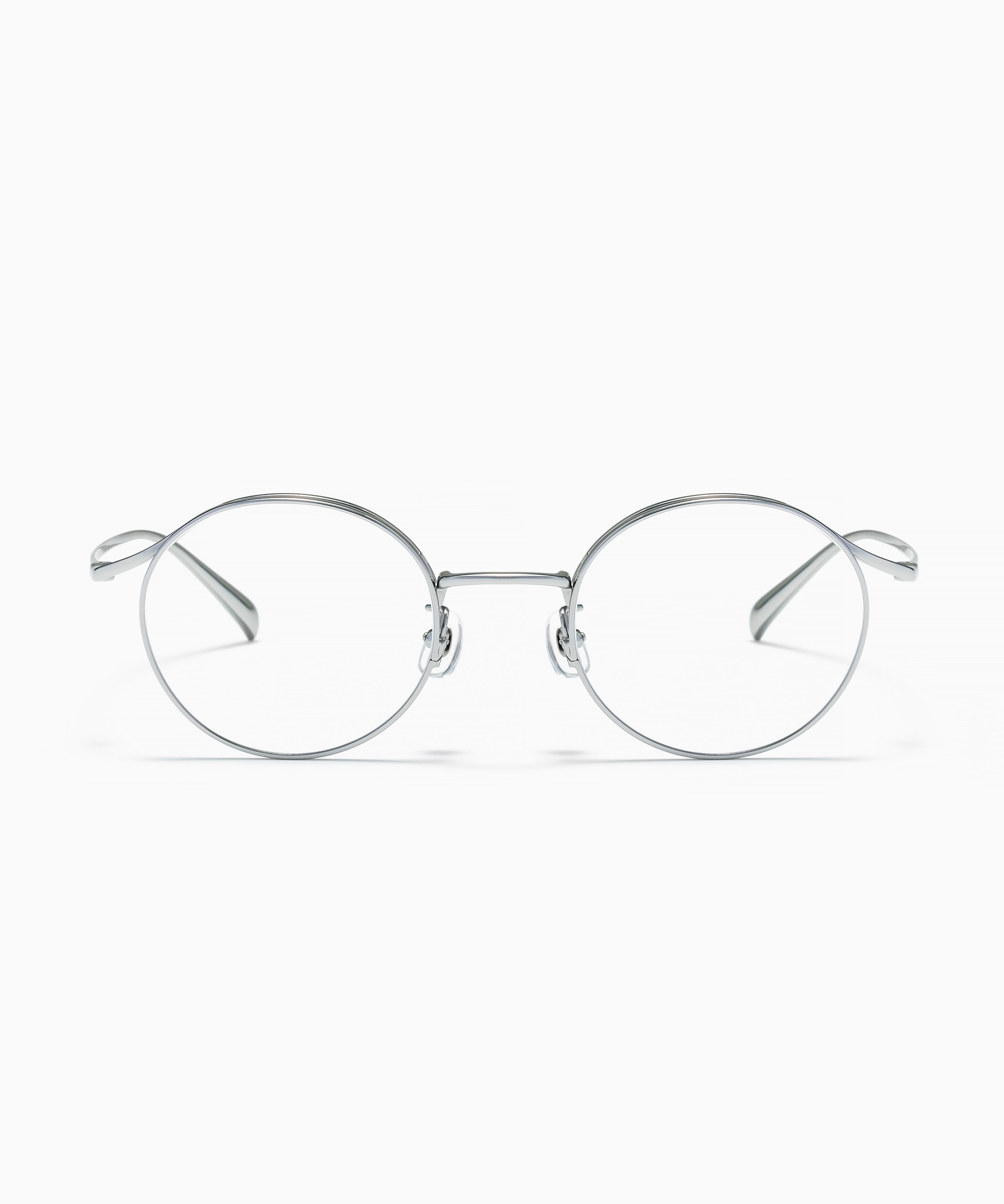 チタン素材で光を集め、顔全体をトーンアップするラウンドフレーム。