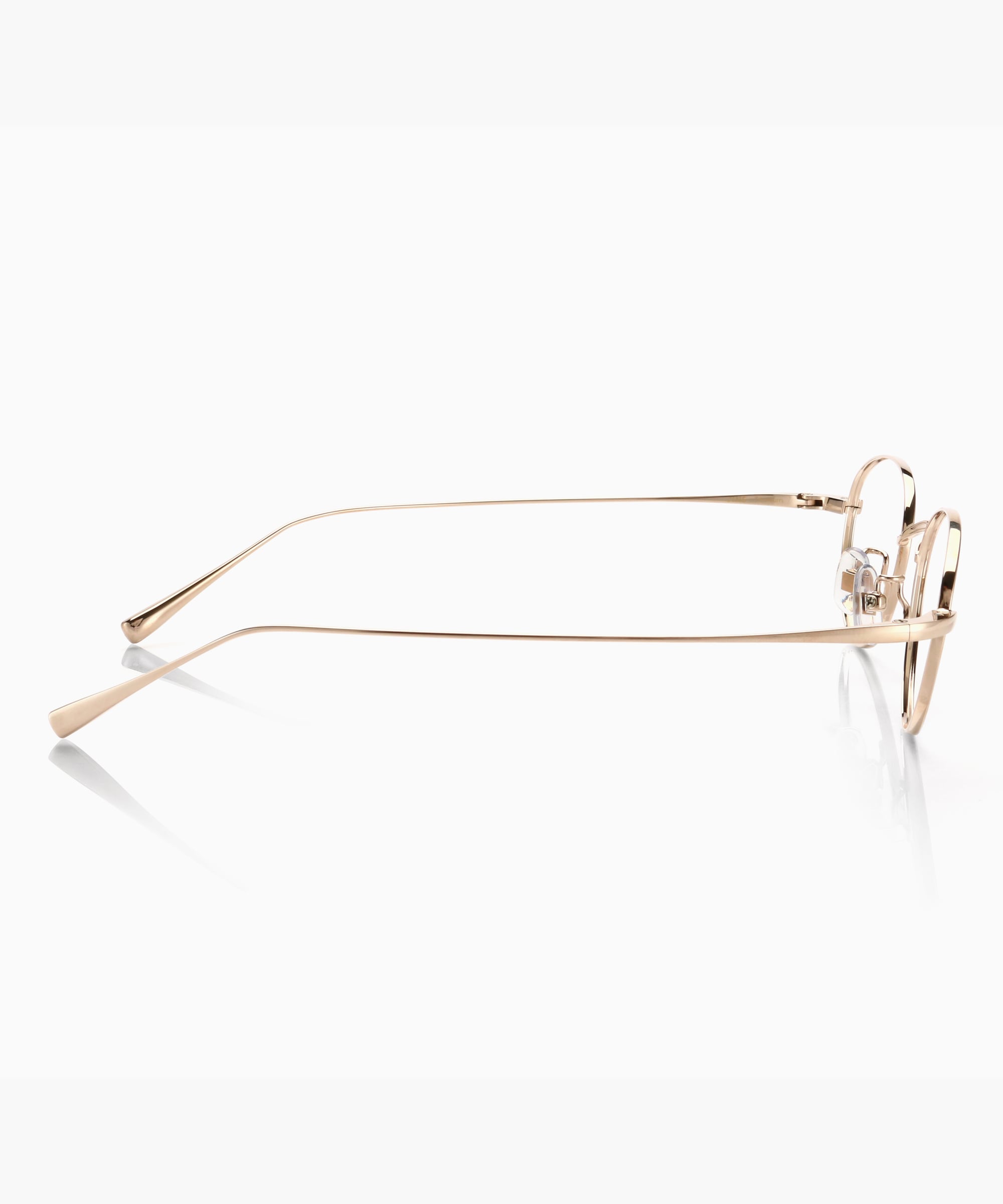左右のテンプルは、内側に向かってゆるやかなカーブのラインで、ミニマルなデザインを追求。