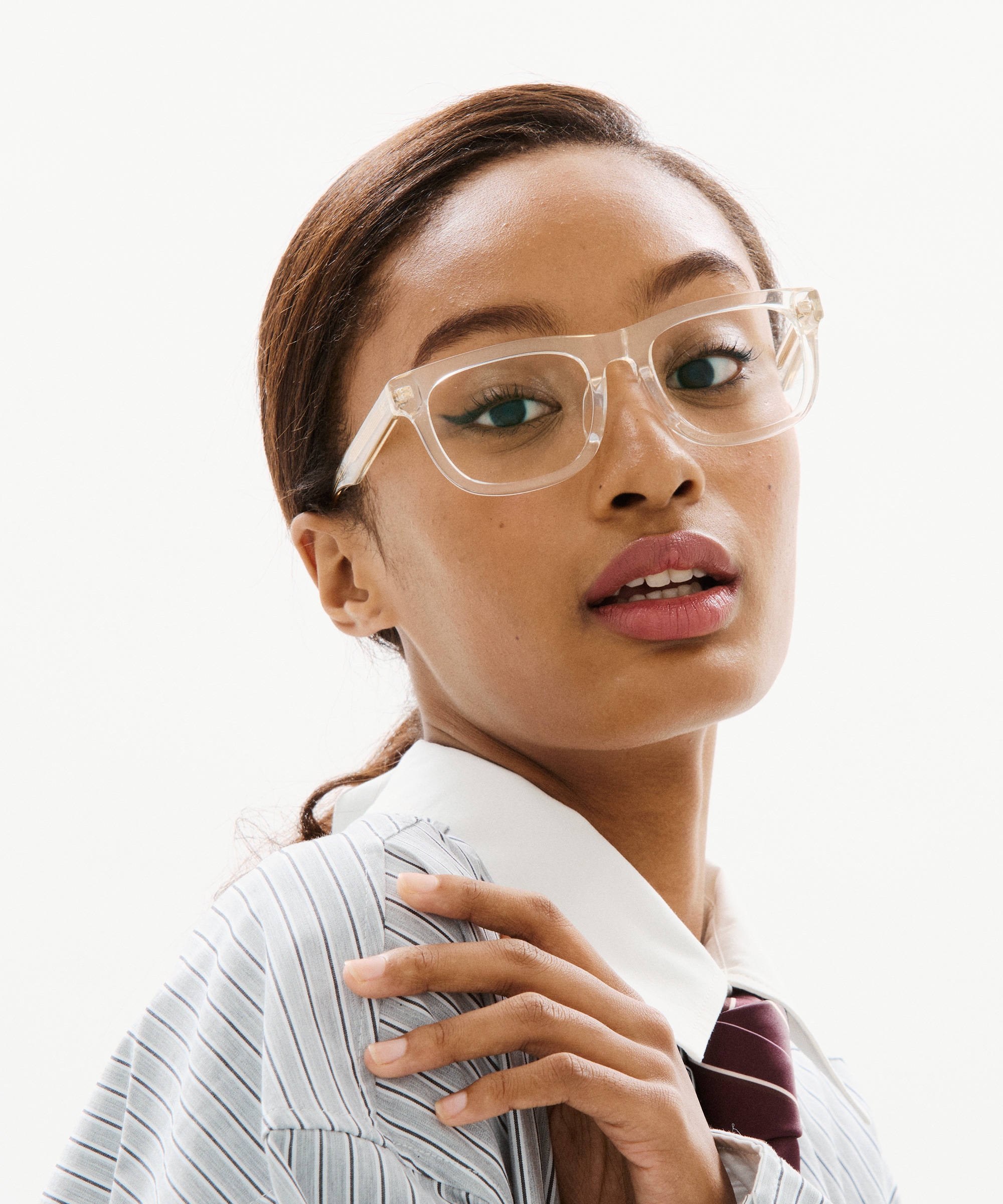 ※オンラインショップでチークカラーレンズのご注文は、レンズ交換券を選択後に店舗にてレンズ交換(度つき・度なし)対応可能です。商品とレンズ交換券が届きましたらお近くのJINS店舗へご持参ください。