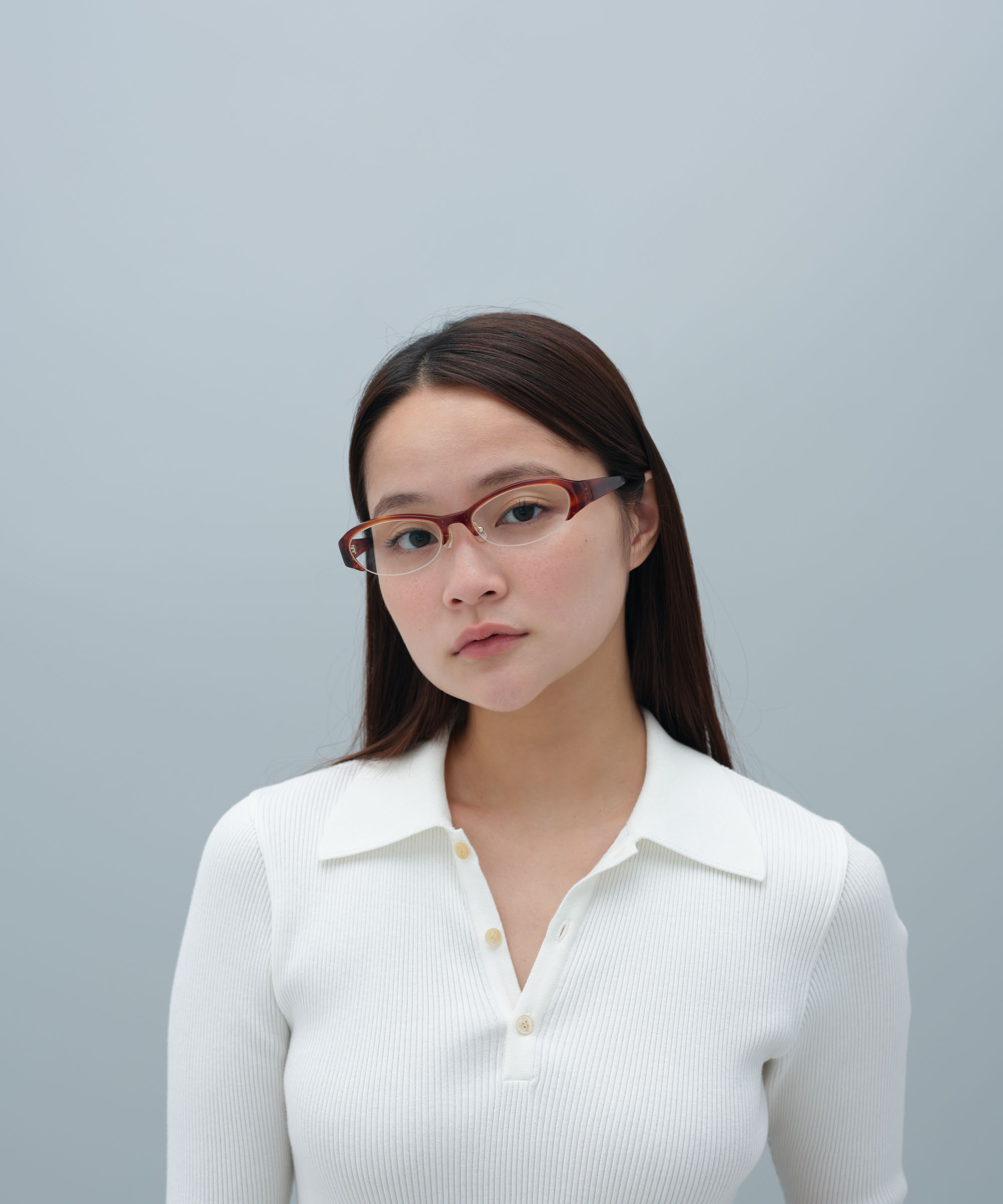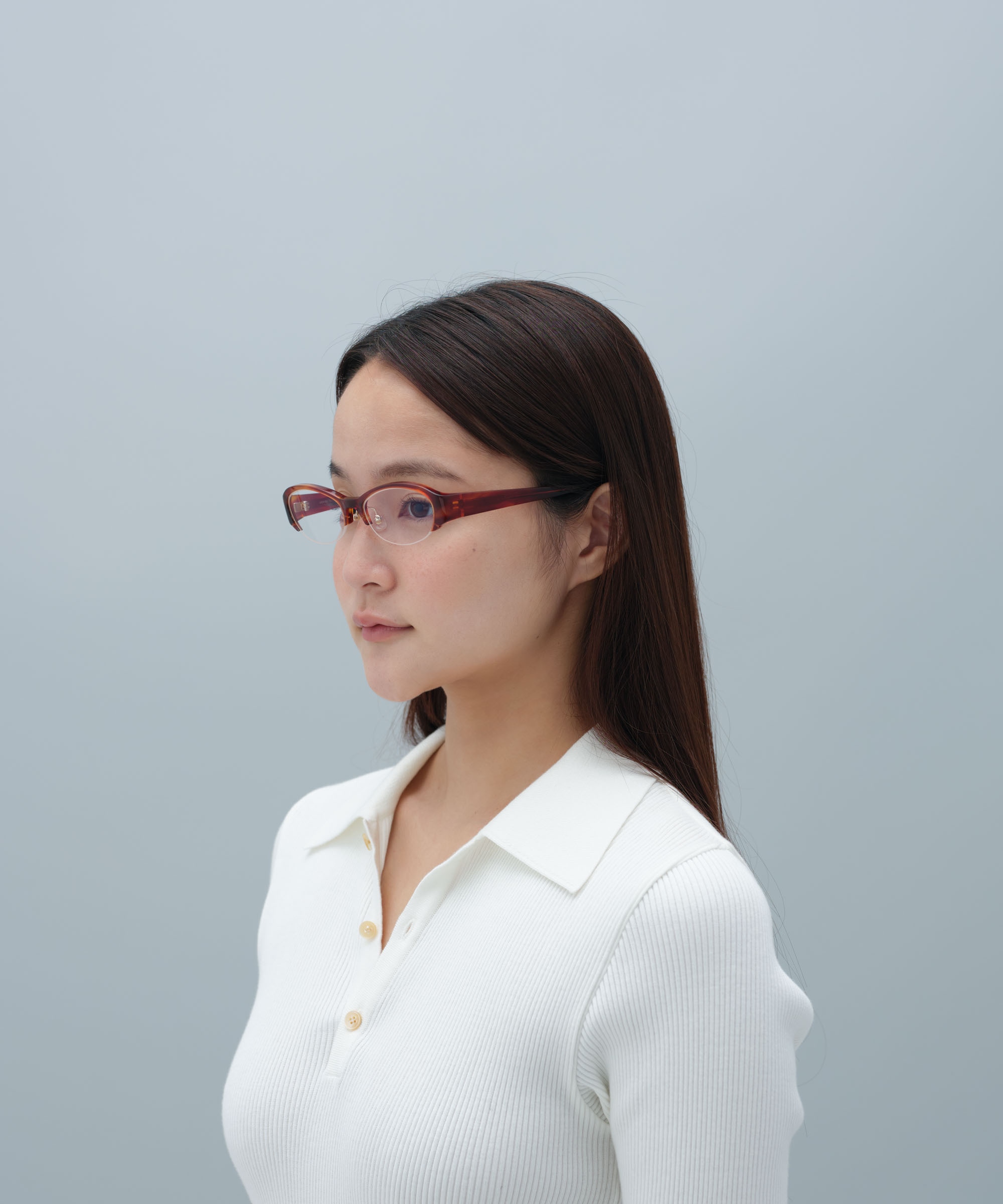 下半分にリムがないためすっきりしたお顔の印象になります。