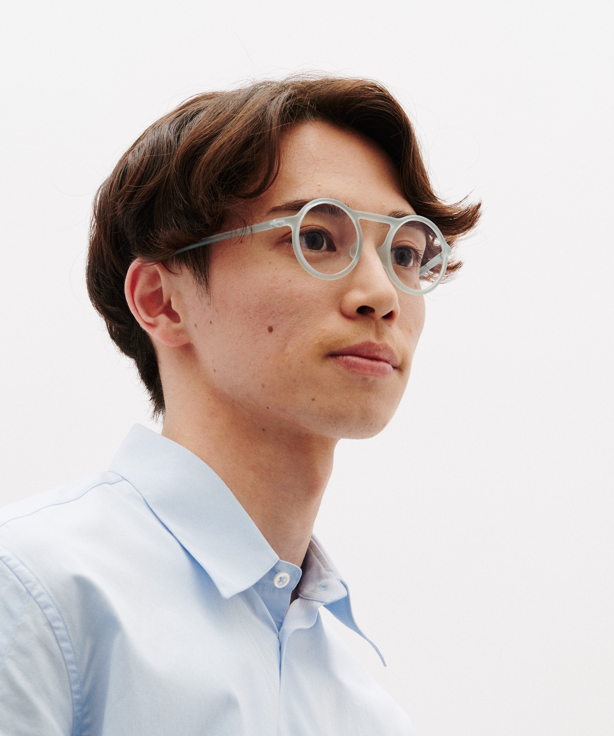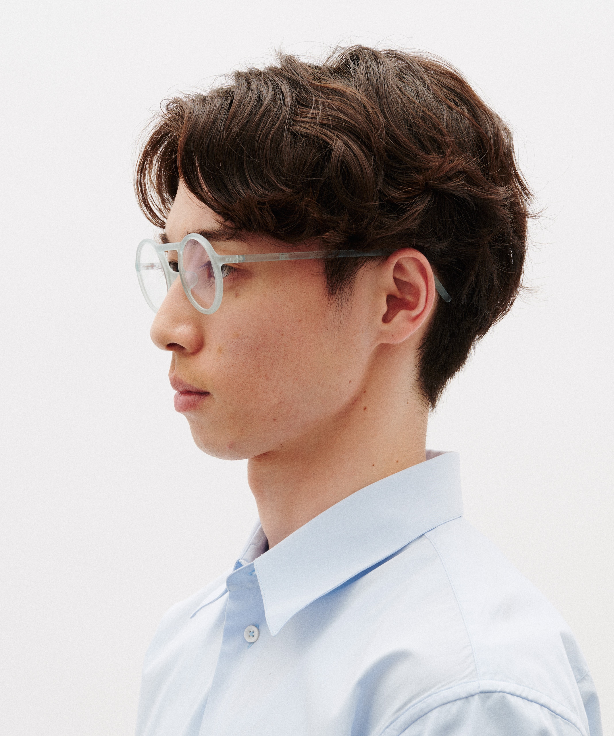CARTOONがとても軽くかけやすいので、サイズ感の近いこちらも冒険してみました。ブリッジが眉に沿い、かつ鼻が高く見えるので想像以上に顔に馴染みます。丸メガネながらスポーティーな雰囲気を楽しめるデザインです。