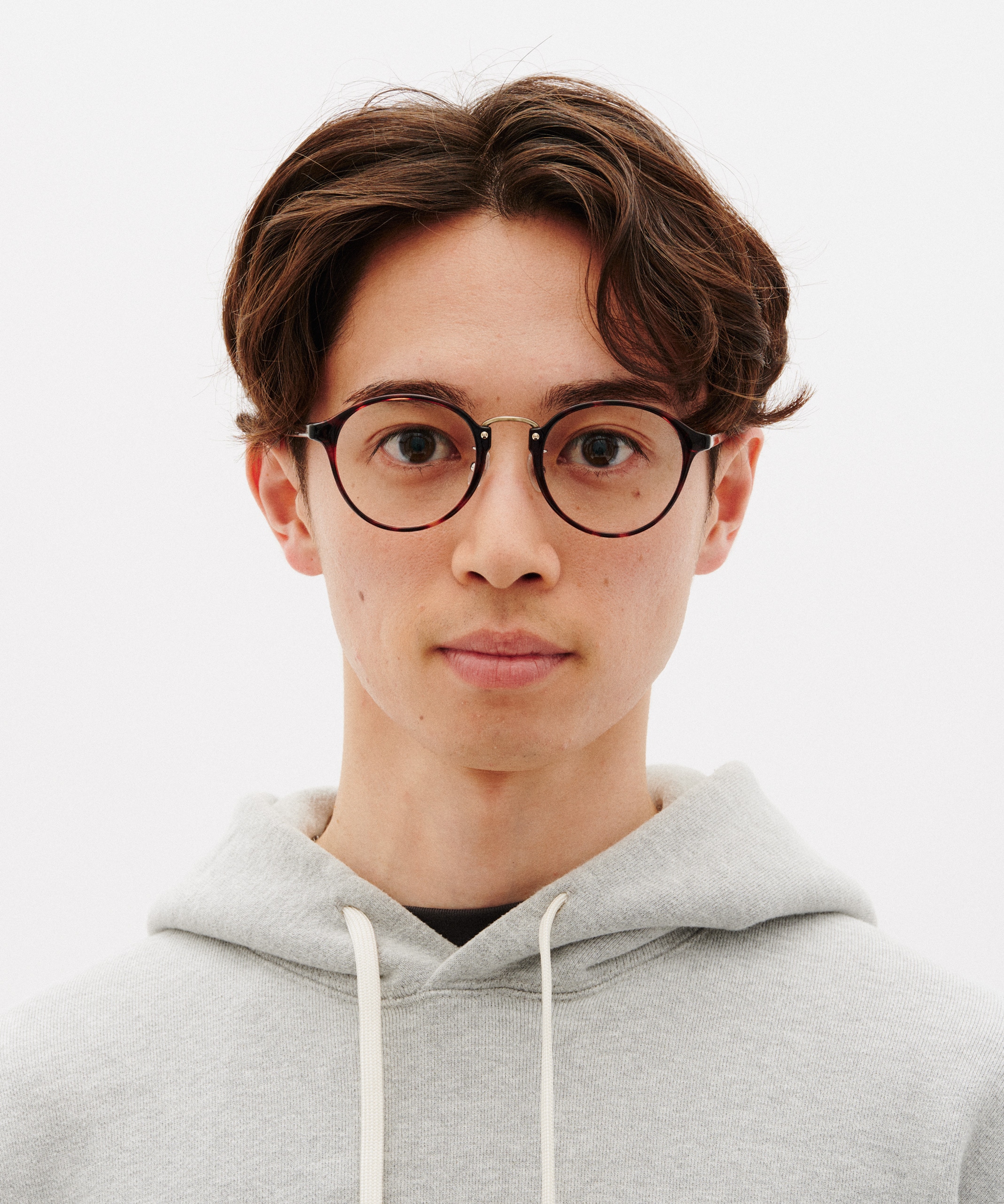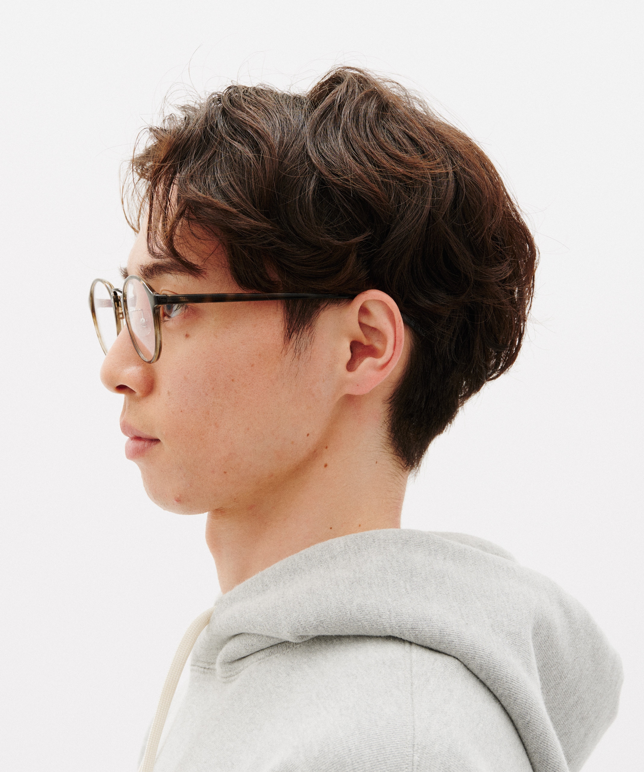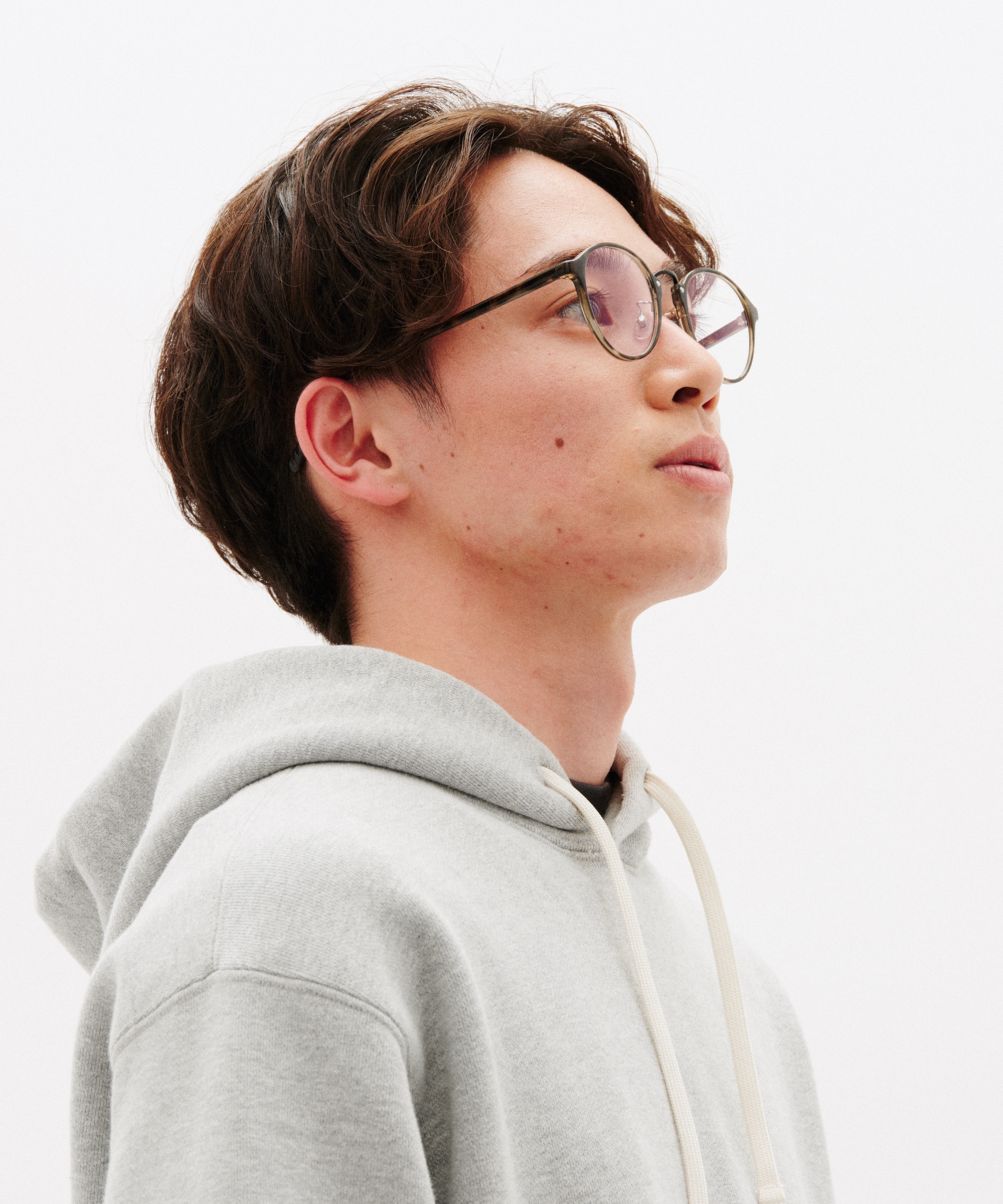 テンプルをスリムに、フレーム幅や角度などの仕様をよりかけ心地よくなるように調整し、異素材のコンビネーションで表現。
