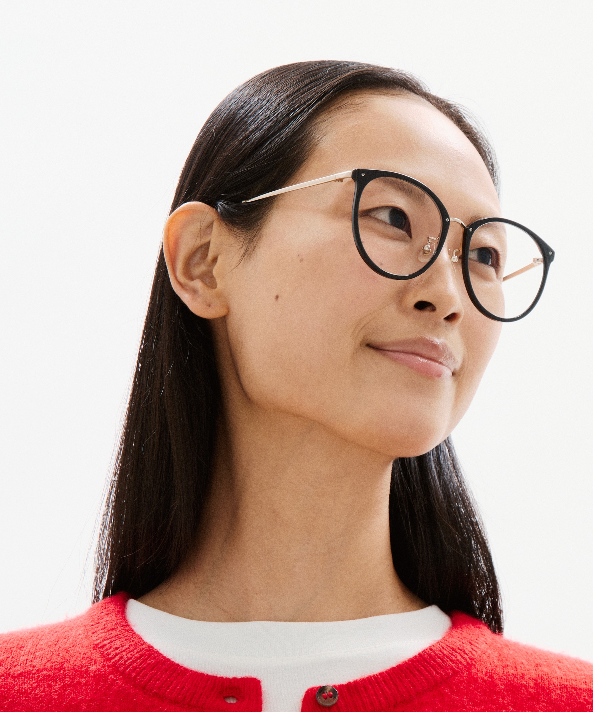 メガネをかけるだけで、頬の血色感をアップさせお肌をより明るくみせる、チーク効果をもたらすレンズです。