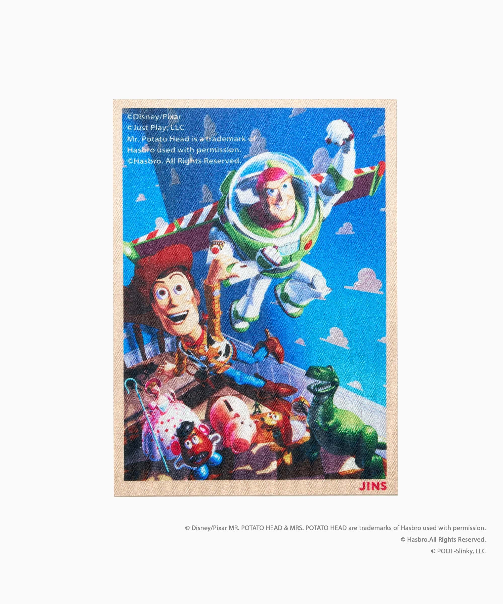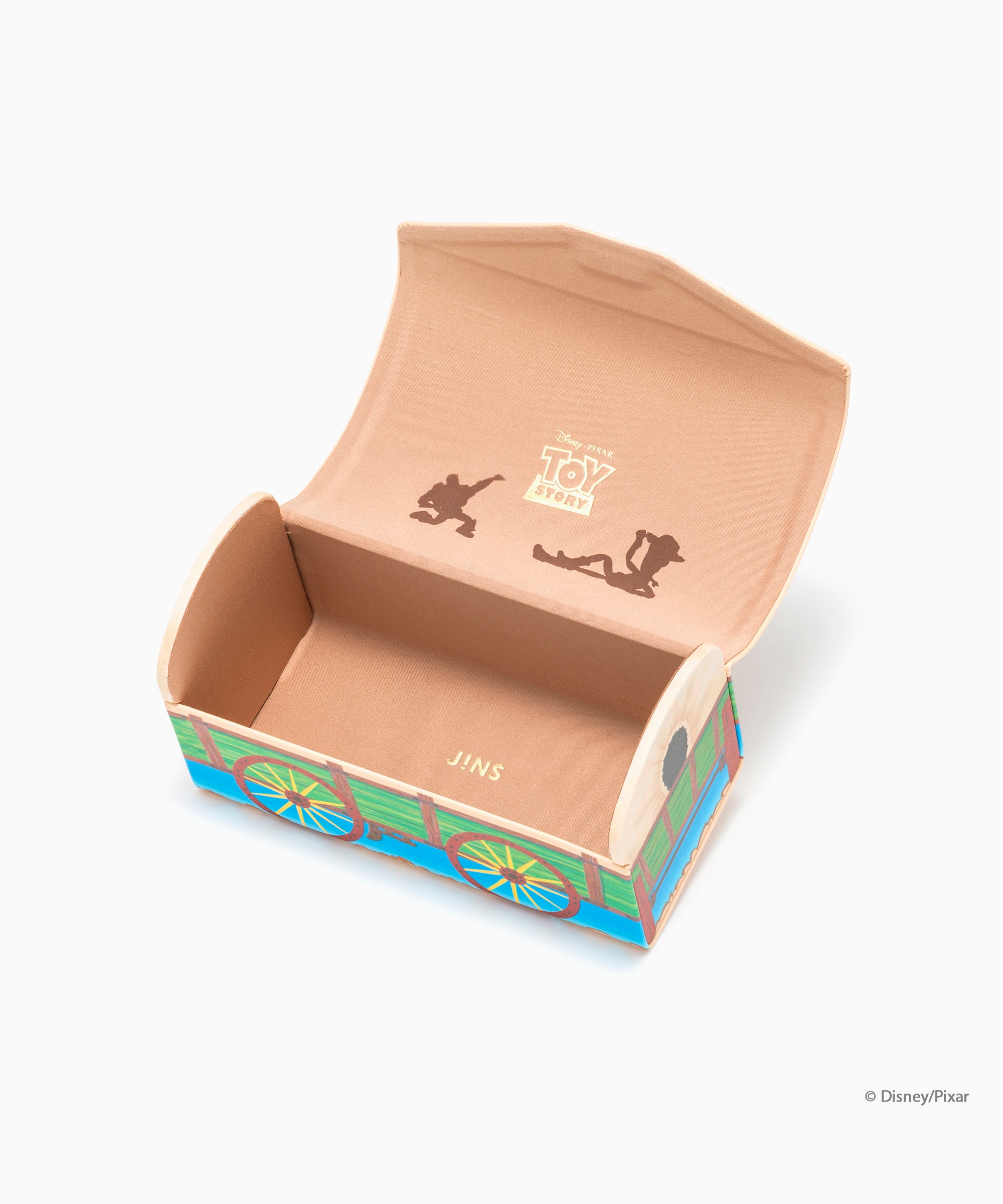 アンディのおもちゃ箱をイメージしたメガネケースや、ポスターアートのメガネ拭きが付属します。