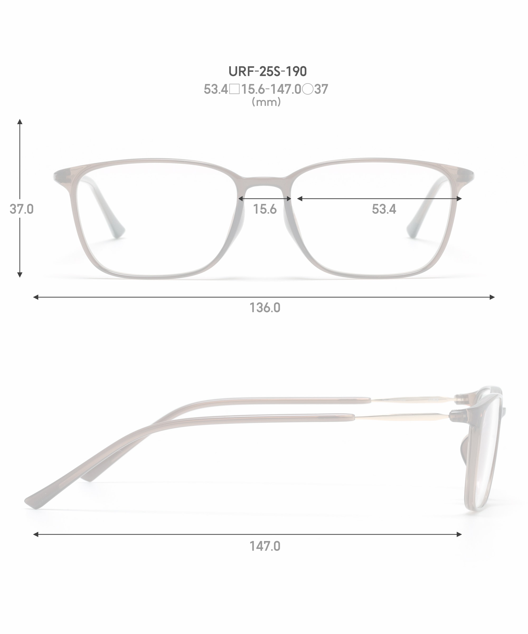 ※グラデーションレンズは作成されるフレームの形により色の濃淡を感じにくくなります。濃淡をより出したい場合は天地幅の大きいフレームを推奨しています。