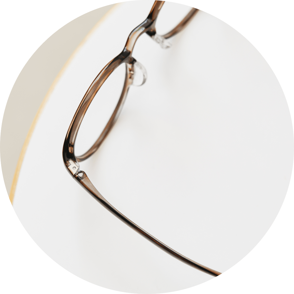 薄くしたテンプルが着用時の負担を抑え、