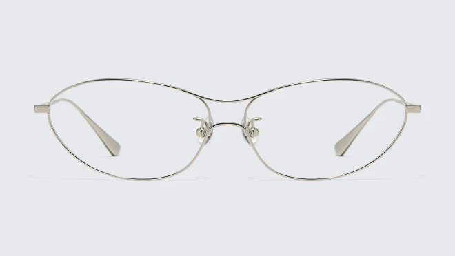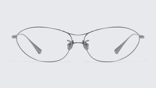 This metal frame stands out with its clean, elongated curves and distinctive bridge design.