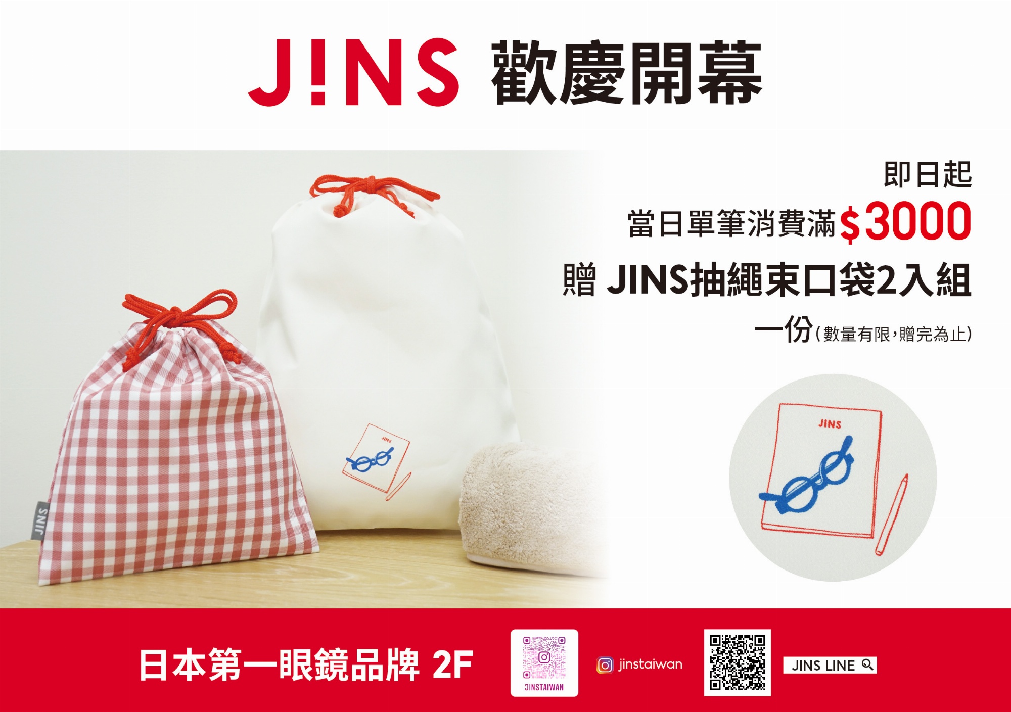 即可獲得「JINS抽繩束口袋2入組」一份✨