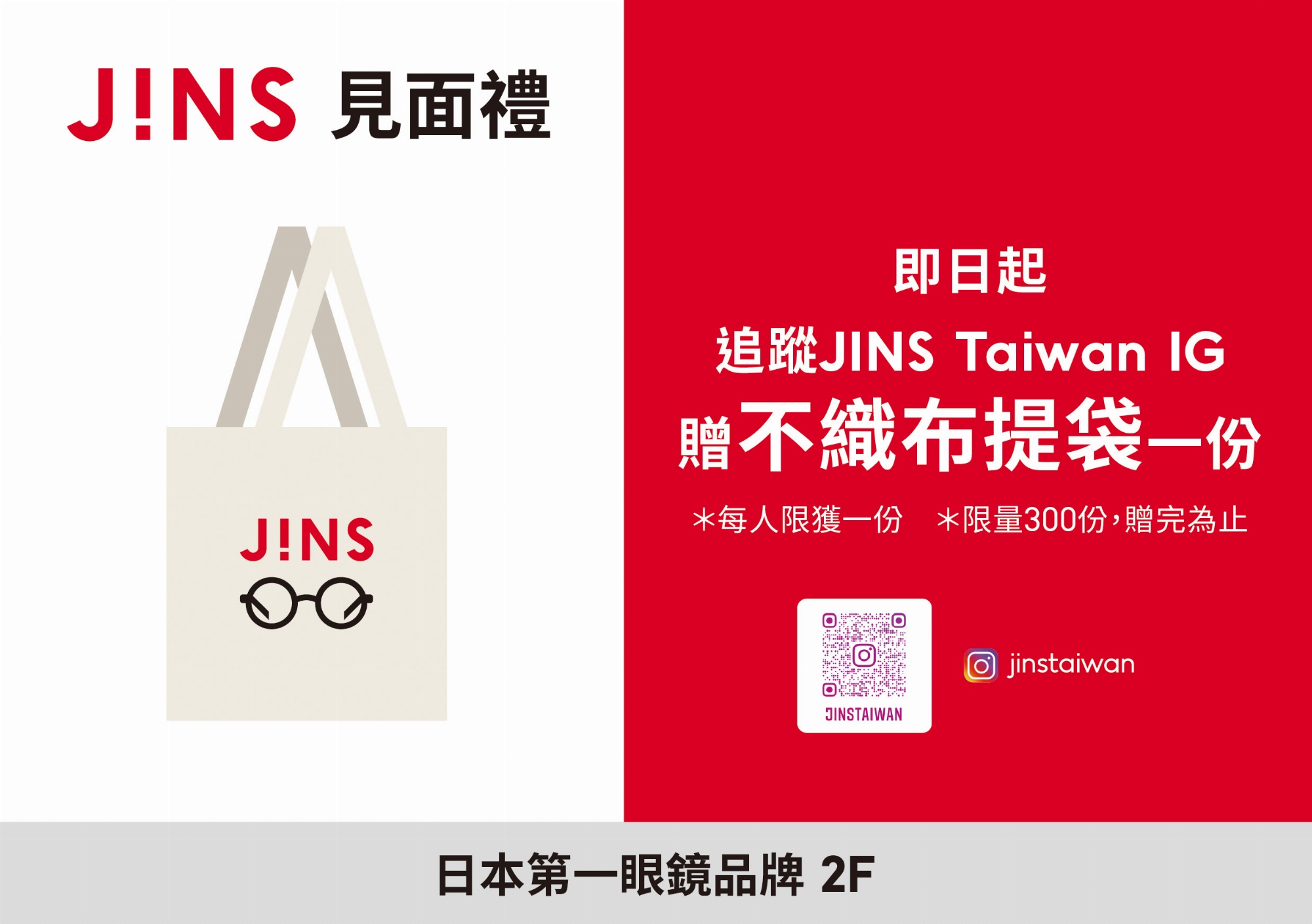 再送 「JINS 不織布提袋 」一份!