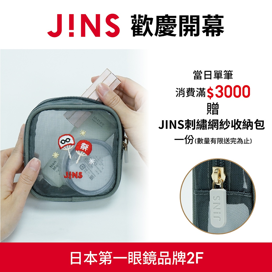 即可獲得「JINS 刺繡網紗收納包」 一份✨