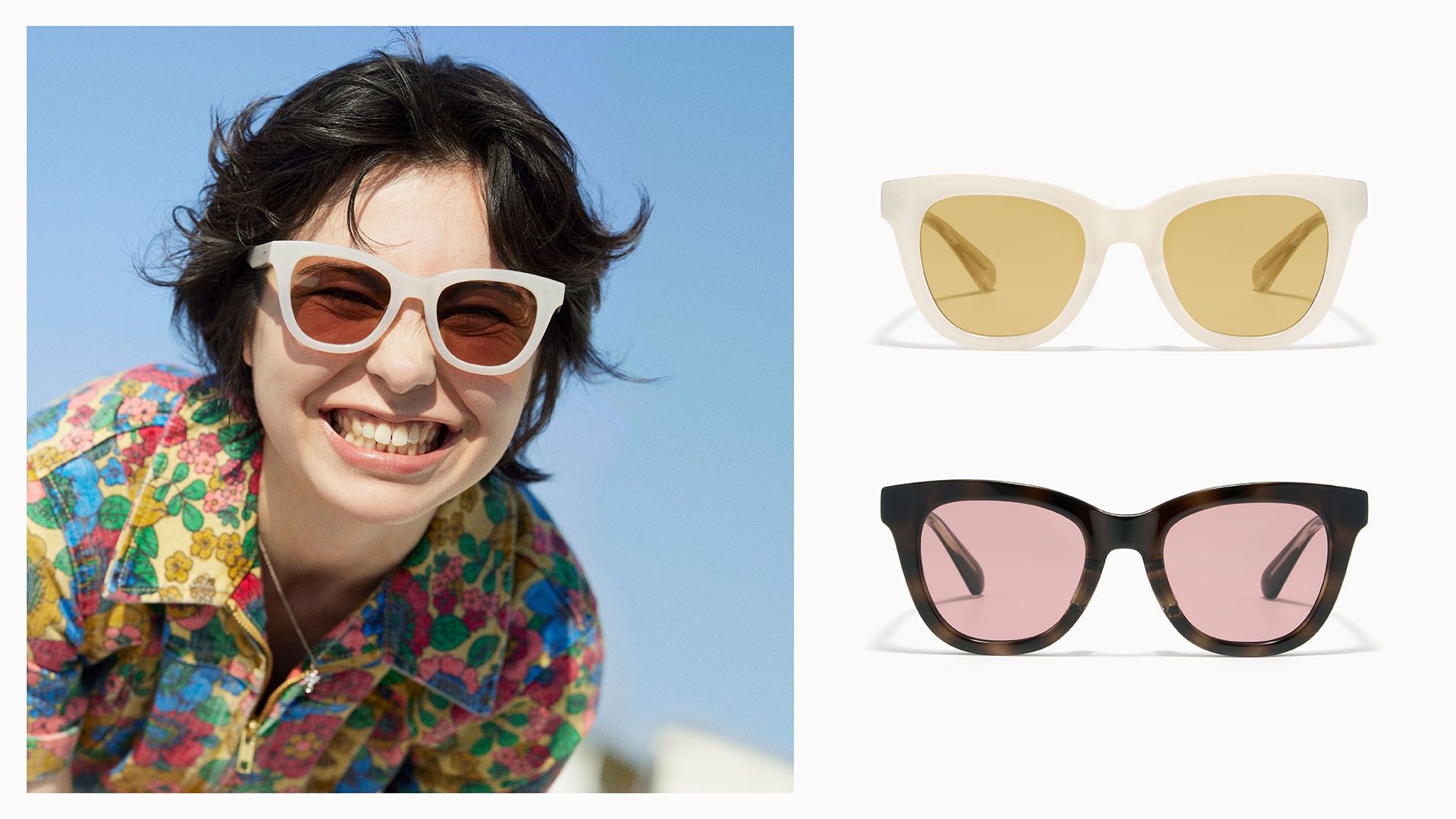 【厚邊框款】想要滿滿的渡假氣息?粗框墨鏡強烈的存在感,專門為想要展現個性和滿滿造型感的族群設計。厚邊框款除了大框外,也推出窄框、貓眼框的設計,鏡片顏色也不僅只有深色,清涼感的藍色鏡片或帶有低調酷感的灰色,給你意料之外的春夏造型。